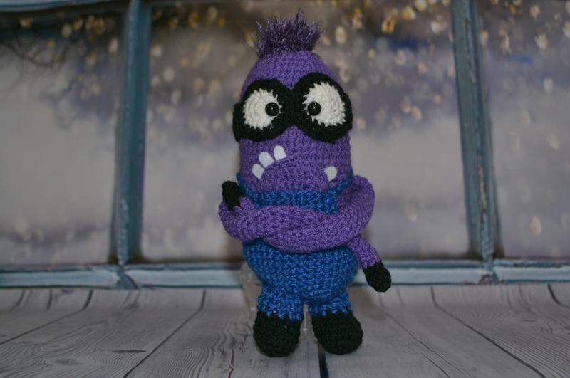 Міньйон Веселий мультиплікаційний герой порадує і дорослих, і малят😀 ручна робота пряжа гіпоалергенний акрил BONBON, наповнювач силіконізоване поліефірне волокно (гігієнічне, м'яке, пружне, легке, зберігає форму після прання). Будь-кількість і колір під замовлення 6*6*18 (h) см Зроблено з любов'ю❤ Товар виготовляється на замовлення