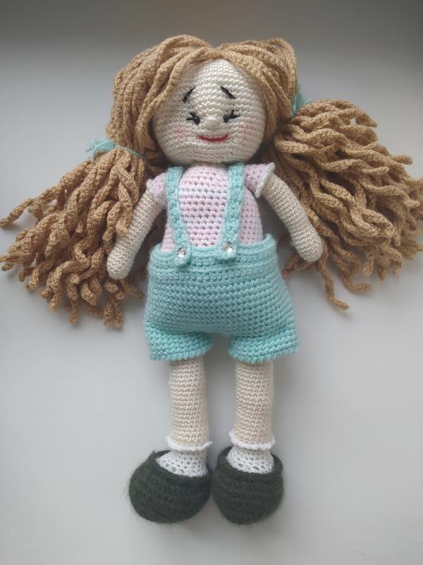 Велика гарна лялечка з рожевими щічками і бірюзовий комбінезоном. Ідеально підійде на подарунок 😍