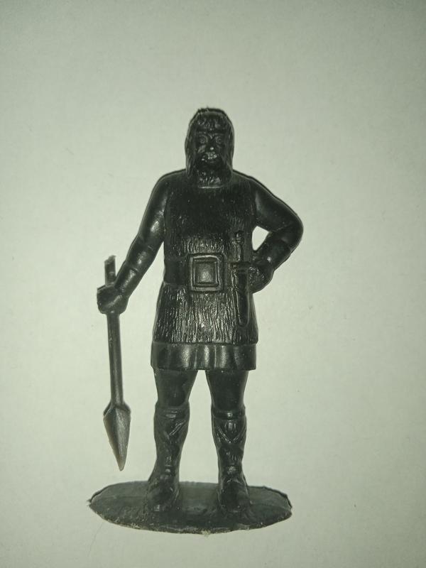 Игрушечный солдатик Викинг, состояние по фото доп.фото по запросу. Высота 6-7см, материал пластмасса, цвет черный.