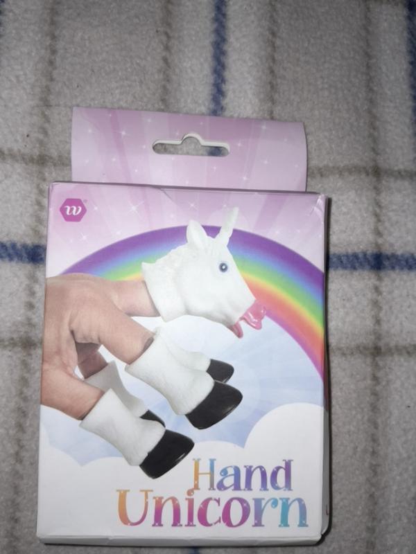 Нова іграшка. голова Єдинорожки та 5 копитець, що одягаються на пальці. Недолік - зігнуто низ коробки-упаковки