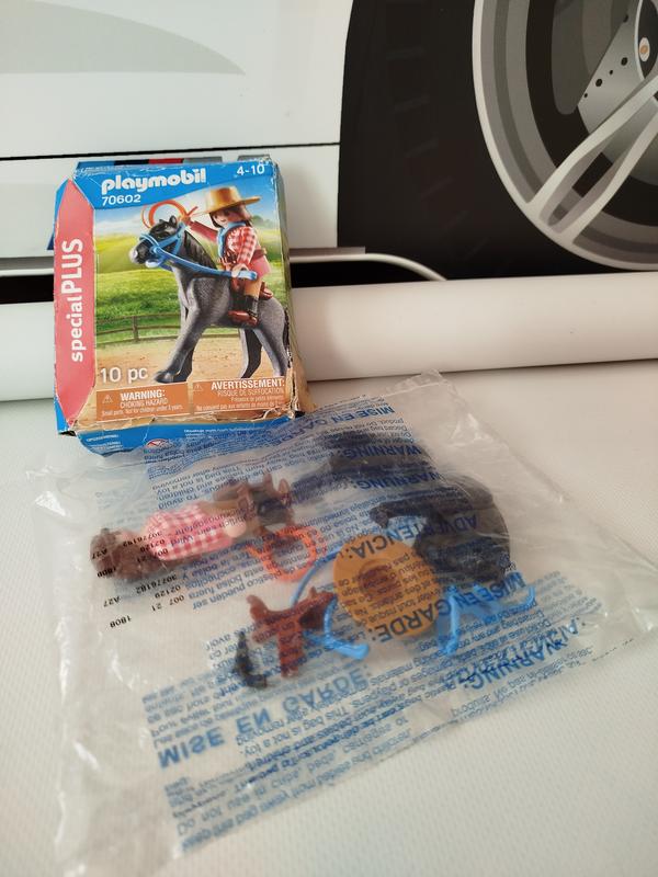 Набір новий, запечатаний, коробка з ушкодженням. У наборі конячка, дівчинка, аксесуари. Спеціальна серія Playmobil PLUS — це колекція незвичайних, унікальних фігурок Playmobil з аксесуарами, які є прекрасним доповненням до наборів цієї компанії й, отже, дають змогу створювати нові сюжети, розвертаючи увагу. До кожного набору, крім фігурки, входять тематичні аксесуари. Комплектація 1 райдер 1 кінь 1 ласо, 1 пістолет