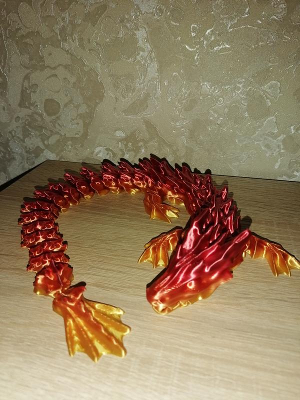 Іграшковий дракон, надрукований на 3д принтері, з якісного екологічного пластику, рожево - золотого кольору. Рухливий. 43 см.
