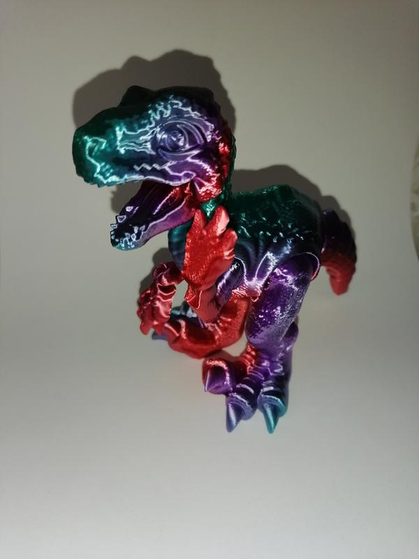 Іграшковий динозавр Велоцираптор, надрукований на 3д принтері з якісного екологічного пластику. Не має запаху. Щелепа, лапи та хвіст рухливі.