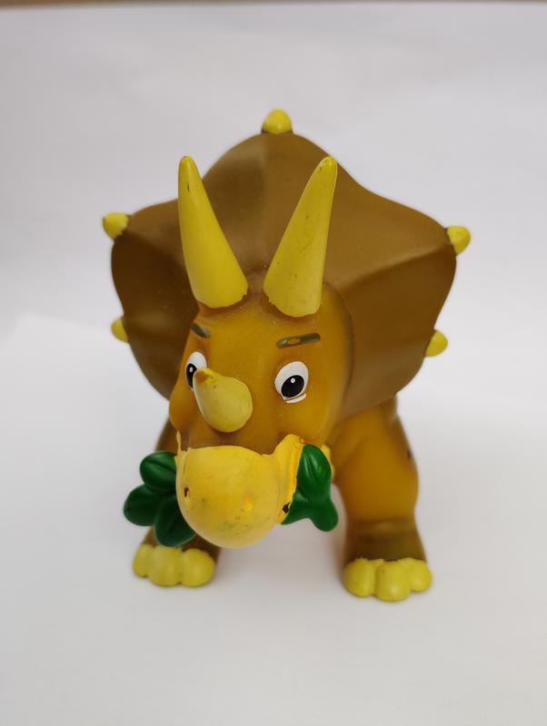 Фігурка динозавра трицератопса, із твердої резини, довжиною 16см, є кілька незначних потертостей (додам додаткове фото за запитом), в цілому дуже класна фігурка.
