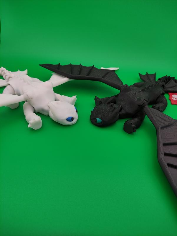 Беззубик і Денна Фурія – Нічна та Денна Магія Дружби Легендарний дует із «Як приручити дракона»! Беззубик – харизматичний Нічна Фурія, символ відваги, вірності та нічного неба. Денна Фурія – граційна Світла Фурія, втілення краси, мудрості та світла. Разом вони створюють магію дружби, що зігріває серце фанатів. Надруковані з ювелірною точністю на професійному 3D-принтері, ці фігурки стануть окрасою вашої колекції, інтер’єру або ідеальним подарунком для поціновувачів фентезі. Чому варто обрати наших драконів? Вишуканий дизайн: Деталізовані моделі, крила та виразні пози – кожна фігурка відтворює дух улюблених героїв. Якісні матеріали: Виготовлені з екологічного PLA-пластика, безпечного, міцного та біорозкладного. Гнучкість і міцність: Легка гнучкість моделей для безпечного транспортування та використання. Ідеальний розмір: 21×27 см – компактні, але вражаючі, для полиць, столів чи колекційних дисплеїв. Персоналізація: Замовте фігурки в інших кольорах за запитом! Для кого? * Фанатів «Як приручити дракона». * Як іграшки для дітей які мріють мати Беззубика та Денну Фурію вдома. * Колекціонерів фентезі-артефактів і мультфільмів. * Любителів унікального декору для дому чи офісу. * Тих, хто шукає особливий подарунок на день народження, Новий рік чи свята. * Гравців у настільні ігри (D&D, фентезі), які хочуть прикрасити ігровий простір. Характеристики: * Матеріал: PLA (екологічний, біорозкладний). * Колір: Чорний (Беззубик) і Білий (Денна Фурія). * Розмір: 21×27 см (висота × ширина). * Вага: 50 г ± 2 г (кожна фігурка). * Виробництво: Україна, 3D-друк. * Термін виготовлення: 1–2 дні для кастомних кольорів. Замовте зараз і додайте магію Беззубика та Денної Фурії у своє життя!