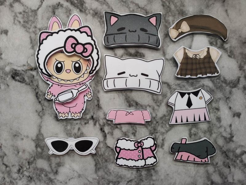 Багаторазова гра на липучках Лабубу + одяг. Лабубу 13х8 см, 11 змінних деталей Водостійка гра.