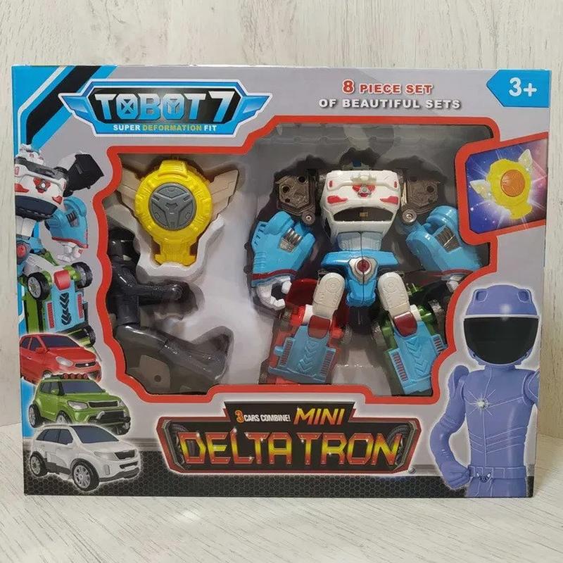 Тобот Дельтарон із легкістю перетворюється на три яскраві машинки з колесами, що обертаються. Хлопчик зможе придумати безліч фантастичних сценаріїв, у яких робот у потужних силових рукавичках бореться з величезною армією супротивників. У комплекті: тобот, фігурка та медальйон зі шнурком. Під час натискання на медальйон він світиться і видає звук. Висота тобота 20 см. Розмір коробки 34 * 11 * 28 см.