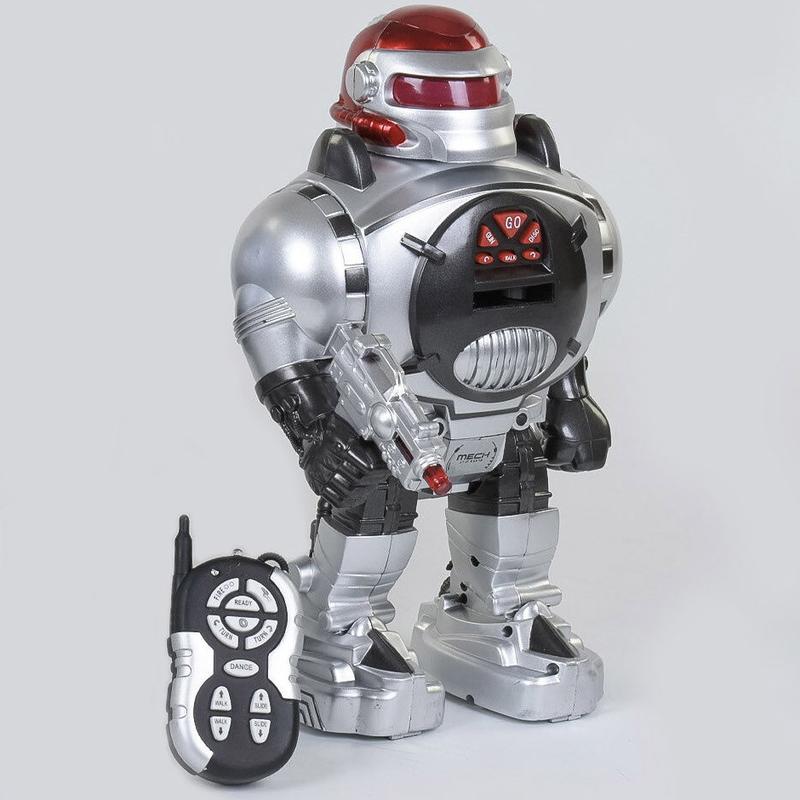 Робот говорит 8 фраз на английском языке. Умеет танцевать, ходить вперед и назад, скользит, вращаться вокруг своей оси. В правой руке у него находится бластер. Рука с бластером может подниматься и опускаться. Управляется с пульта дистанционного управления или с панели на самом роботе. Робота можно запрограммировать на последовательность действий. Присутствуют световые и звуковые эффекты. И плюс ко всему он стреляет мягкими поролоновыми дисками которые загружаются через верхнюю часть робота. Робот работает от 4 батареек типа AA и пульт от 2 батареек типа AA (в комплект не входят). Размер робота 19 * 12 * 32 см. Размер коробки 21 * 12 * 33 см.
