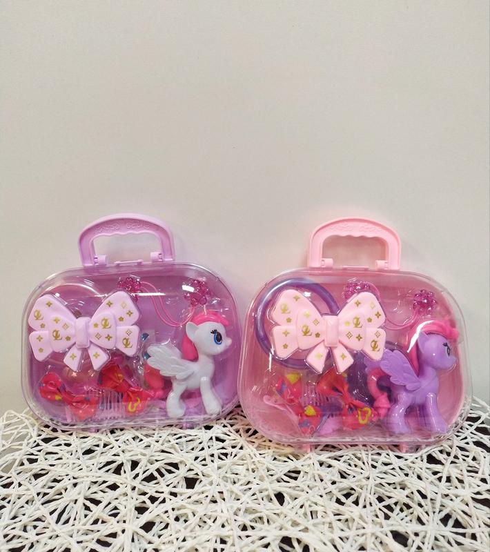 Іграшка Поні LP 7см із аксесуарами. У наборі - дзеркало, шпильки, кільце, браслет, гумка для волосся. Набір упаковані в чемодан. В упаковці 8шт.