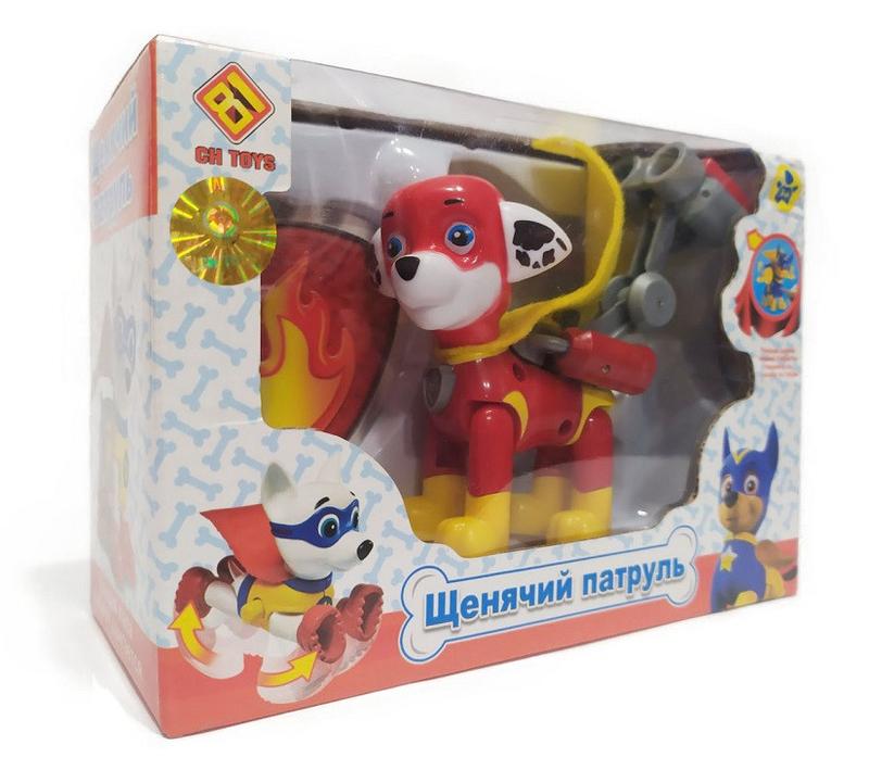 Пожежник з популярного серед дітей мультфільму, іграшка Маршал "Щенячий Патруль". Щеня належить до благородної породи далмаатинец. Розмір фігурки: висота - 10 см, ширина - 3,5 см, довжина - 9 див.