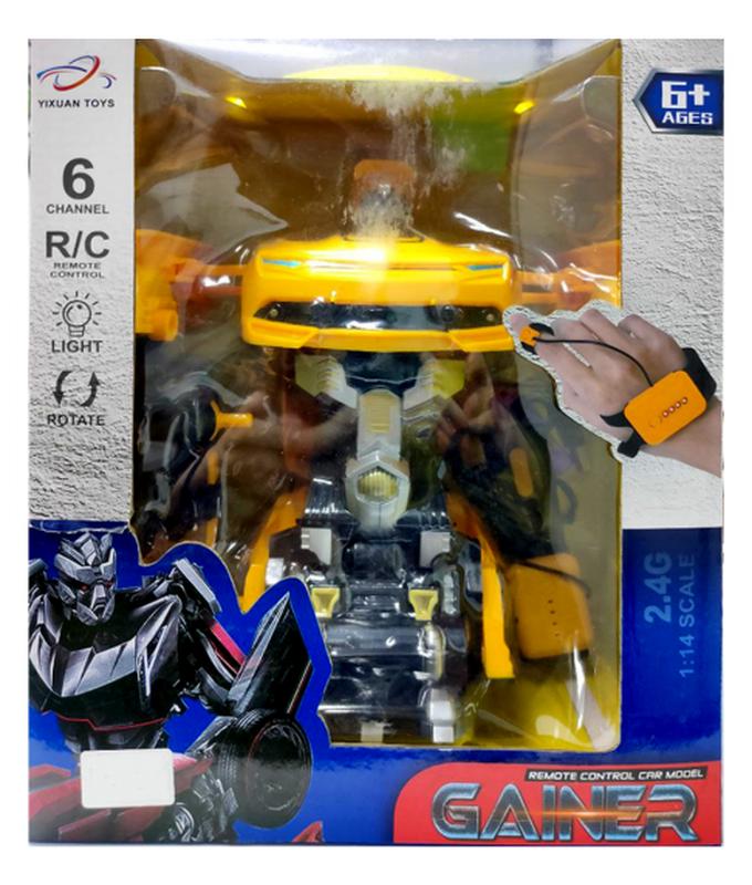 Трансформер Бамблби на пульте управления или управление жестами руки новинка в нашем онлайн -- магазине. Трансформируется из робота Бамблби в автомобиль Шевроле Камаро и наоборот. Трансформация происходит нажатием кнопки на пульте управления и обратно. Движение во все стороны (вперед, назад, влево, вправо). Машинка работает от аккумуляторной батареи которая в комплекте с USB зарядным устройством. Для пульта 2 батарейки типа АА нужно докупить. Размер коробки 23 * 20 * 29 см.