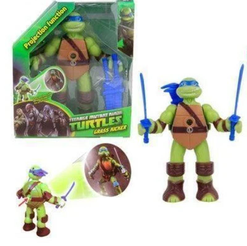 Розмір коробки: 16*14*6 см Висота фігурки: 14 см Матеріал: пластик Функції: під час натискання на кнопку проєктується зображення героя Леонардо — один із головних персонажів. Він показаний як наймолодший з усієї Черепашої середньої частини. Зазвичай носить синю пов'язку та озброєний двома катанами. Йому притаманні лідерство та дисципліна. Отримай своє ім'я на честь художника епохи Ренесанса — Леонардо Так Вінчі.