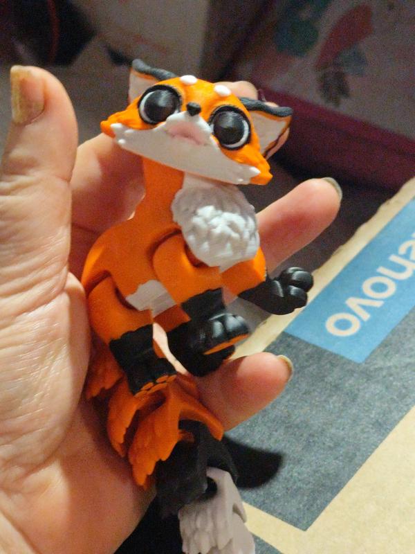 Игрушка фигурка подвижная пластик принт 3d модель рыжая лиса большие глаза