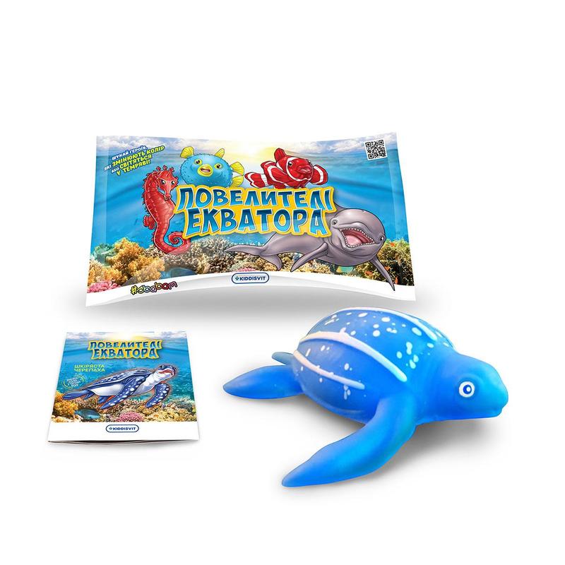 ' Пориньте в екваторіальні води, населені яскравими рогатими занклами та рибами- клоунами, гігантськими шкірястими черепахами та могутніми блакитними марлінами. Зберіть усіх героїв, дізнайтеся цікаві факти та секрети мешканців екваторіальних вод! - Іграшки-тварини виготовлені з еластичного матеріалу та прекрасно тягнуться! - Деякі іграшки здатні міняти колір на сонці, деякі - у воді, а деякі - світяться в темряві! Зберіть їх усіх, щоб дізнатися, хто що вміє! Щоб герої змінили колір на сонці, потрібно тримати іграшку на сонці декілька хвилин. Щоб герої змінювали колір у воді, потрібно занурити іграшку в воду, температура якої повинна бути вищою, ніж 30-32 градусів. А для того, щоб іграшки світилися в темряві, їх потрібно потримати на сонці від 1 до 5 хвилин, після чого тварини будуть світитися. Знайди суперрідкісну черепаху, що змінює колір у холодній воді! - Внутрішня частина всіх тварин наповнена прозорими орбізами. - Середній розмір іграшки без пакування – 12*10*5 сm. - Зберіть повну колекцію з 12 жителів екваторіальних вод! До набору входить: - 1 стретч-іграшка у вигляді тварини; - лист колекціонера. Рекомендовано для дітей віком від 3 років. '