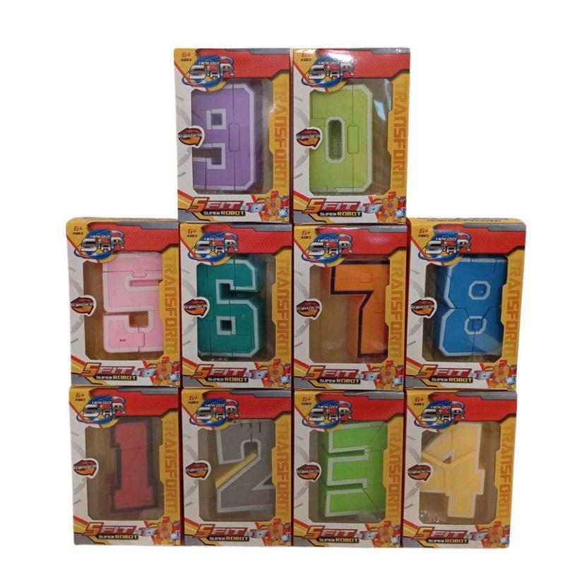 У цьому наборі 10 цифр, кожна цифра-трансформер, кожна цифра може перетворитися на роботу! Висота кожної цифри 10 см. З усіх 10 цифр можна побудувати одного великого робота або з кожної цифри одного маленького робота.