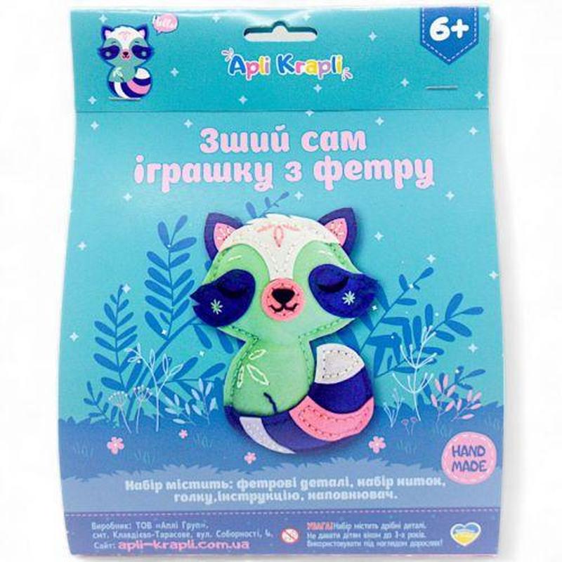 Набір для творчості українського бренда "Аплі Краплі". За допомогою деталей набору можна самостійно створити невелику м'яку іграшку з фетру. У комплекті все необхідне: фетрові деталі, набір ниток, голка, інструкція (на пакованні), синтетичний наповнювач. Цей різновид творчості чудово допоможе розвинути в дитини креативність, посидючість, увагу, дрібну моторику рук. Виготовлений із якісних і безпечних матеріалів. Рекомендовано для дітей віком від 6 років. Бренд: Аплі Краплі Паковання: Пакет Колір: Різнобарв Вага в упаковці: 67 г Габарити в упаковці: 21 x 16.5 x 5.5 см Страна виробник: Україна Матеріал: Комбінований Комплектація: фетрові деталі, набір ниток, голка, інструкція (на пакованні), синтетичний наповнювач
