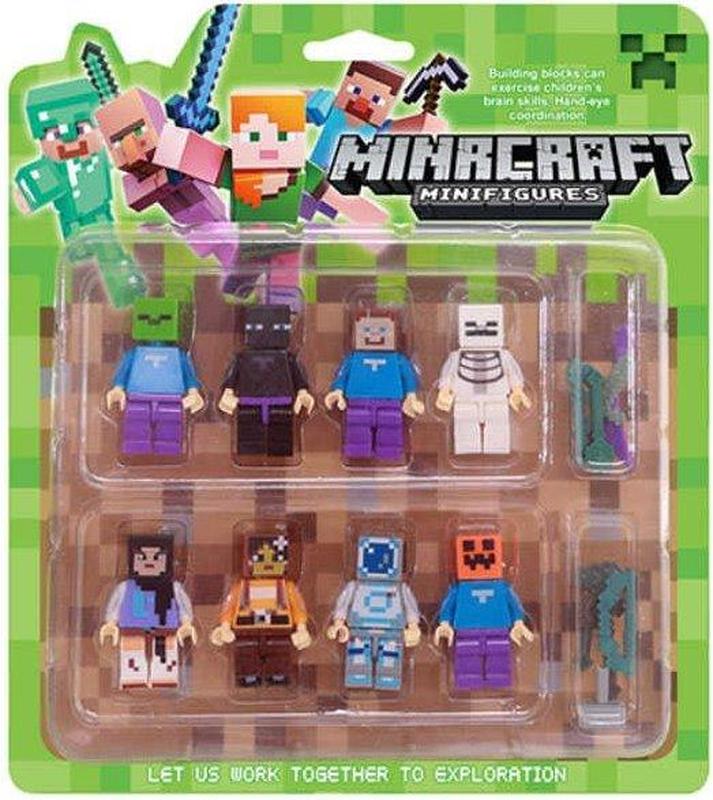 Хітова новинка для любителів гри Майнкрафт! Набір з 8 скінів з рухливими частинами тіла! Зброя, яку можна встановлювати в руку!