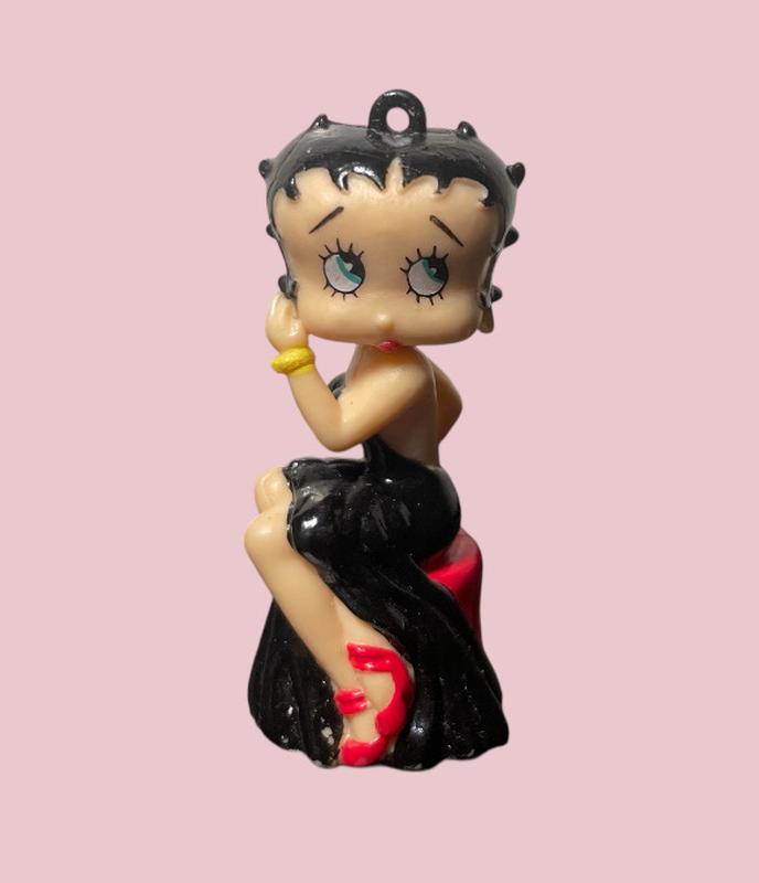 Великолепна колекційна вінтажна фігурка Бетті Буп Стан ідеальний Betty Boop — відомий персонаж анімаційних фільмів 1930-х років На голові фігурки є невелике кільце,можливо використовувати як брелок або підвіску, або як прикрасу, наприклад торту Зроблено з плотноі гуми