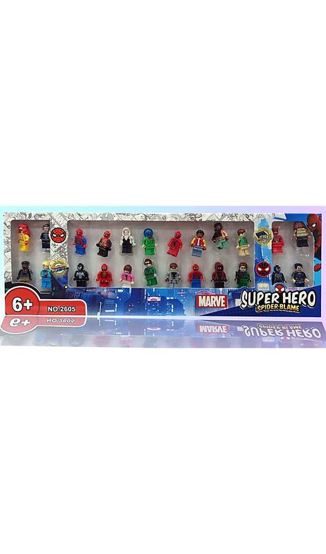 Набір фігурок Marvel Super Hero, 24 фігурки (2605) Опис: Великий набір мініфігурок за мотивами коміксів Marvel. До комплекту входять 24 персонажа, включно з різними версіями Людини-павука, супергероїв і лиходіїв. Фігурки виготовлені в стилі конструктора та сумісні з іншими аналогічними наборами. Підходять для ігор, колекціонування та створення власних сюжетів. Переваги: - 24 деталізовані мініфігурки - Рухомі частини та стійка основа - Міцні та безпечні матеріали - Можливість комбінування з іншими конструкторами - Чудовий подарунок для шанувальників Marvel і колекціонерів Характеристики: - Кількість фігурок: 24 - Вікова категорія: 6+ - Матеріал: пластик - Тематика: Marvel / Людина-павук - Тип паковання: коробка з блістером