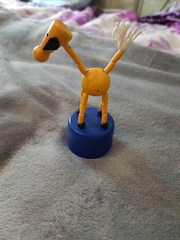 Продам дерев'яна іграшка-жираф, яка рухається, коли натискаєте на основу. Тип: Дерев'яна іграшка-штовхач (push puppet). Механізм: Жираф складається, коли натискається кнопка під синьою основою. Матеріал: Дерево. Особливості: Ручна робота, пофарбований у яскраві кольори. Іграшка в ідеальному стані. Привезена з Німеччини. Відеообзор як працює скину на Ваше прохання. Пересилаю. Оплата на карту.