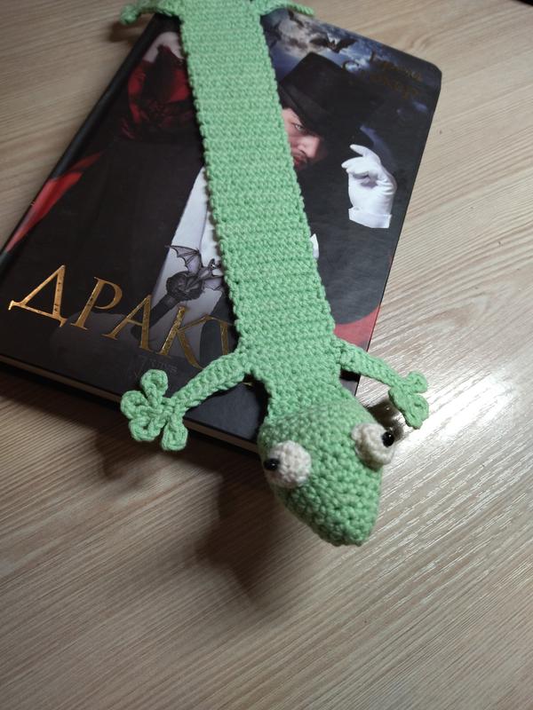Закладка для книги.Прикольний розплющений гекончик.Книжний аксесуар з яким читання стає цікавим.Нитки 5% бавовна 50% акрил.Наповнювач гіпоалергенний холлофайбер.