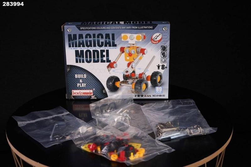 ⚜️Країна виробник: Китай ⚜️Склад: метал ⚜️мікс кольорів; металевий 89 деталей ⚜️Розміри ЗАМІРИ: К/К висота - 15 см, ширина - 20 см товщина - 3 см Деталі цього конструктора з'єднання єднуються між собою за допомогою гвинтів та гайок. Із запропонованих 89 металевих та пластмасовіх елементів хлопчики зможуть своїми руками створити робота-офіціанта, який уміє обертати навколо своєї осі. У комплекті хлопці також знайдуть необхідні для роботи інструменти: ключ і шестикутник. Барвиста схема складання робота допоможе молодим механікам у разі виникнення проблем. За бажання з набору деталей хлопці зможуть зібрати різні конструкції, проявивши кмітливість, фантазію і уяву. Складання металевого конструктора вимагатиме від хлопчиків уміння працювати зосереджено, терпіння та навички закручування гайок.