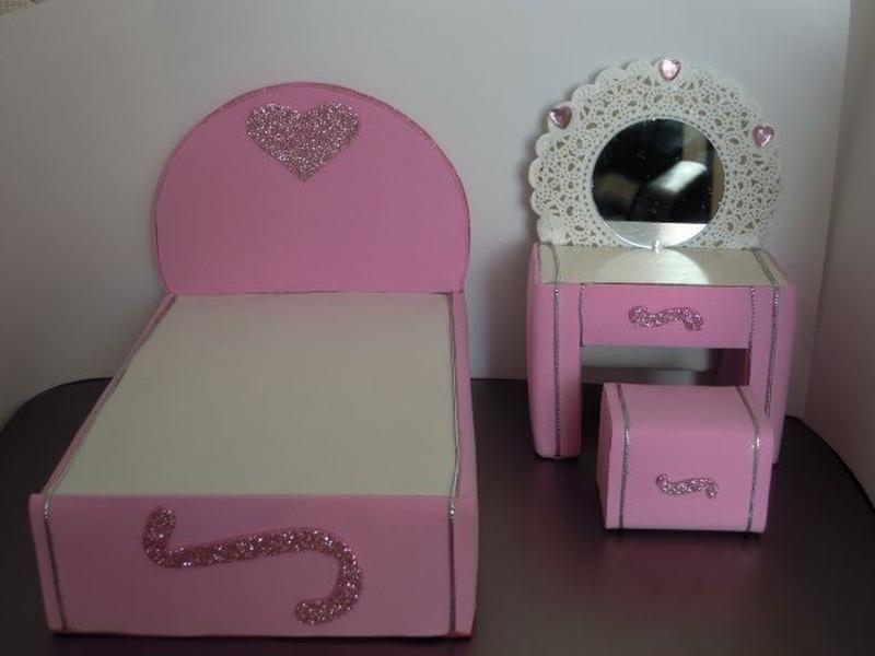 Продам набор мебели для кукол Спальня, Мебель состоит: кровать + покрывало, туалетный столик + пуфик. Материал не вызывает аллергии: фоамиран + картон. Можно делать влажную чистку мебели. Ручная работа, сделана с любовью. Цвет нежно - розовый. Размер кроватки : обычная - 20 см х 14.5 см., большая - 33 см х 15 см