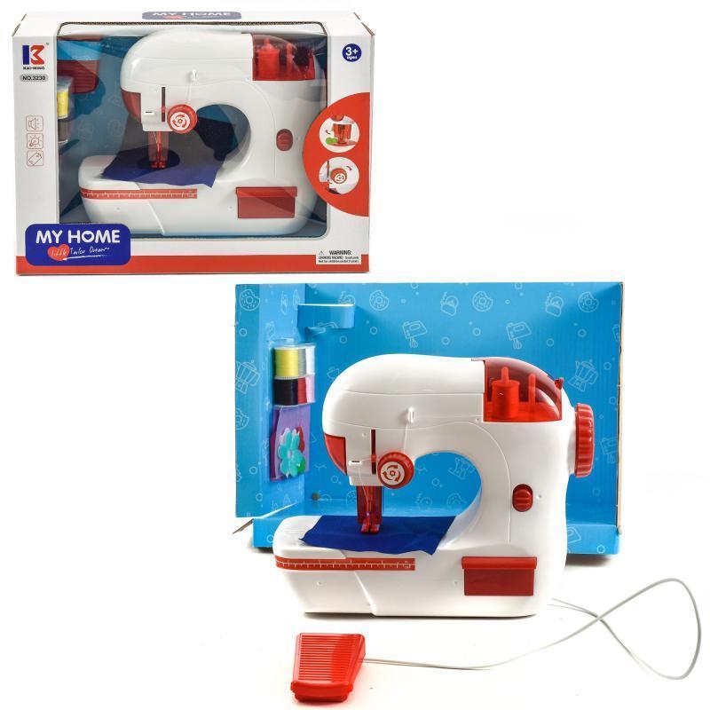 Швейна машина гарна і яскрава. Оформлена машина в білому кольорі, виготовлена з якісного пластика. Є світлові і звукові ефекти. Працює від 3-х батарейок типу АА (не входять в комплект). Вік: 3+ Розмір іграшки: 17 см Матеріал : пластик. Упакування : коробка.