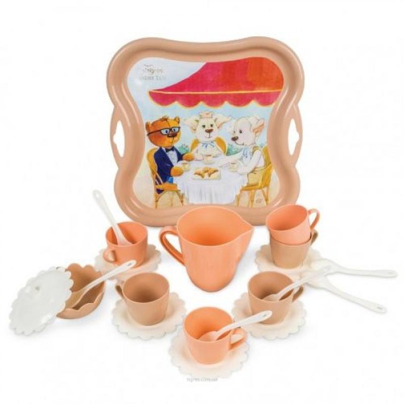 Красивый пластиковый дизайнерский набор для чаепития, нежного кремового цвета, над дизайном которого работал сам Андре Тан. В наборе: поднос с термонаклейкой, чашечки (6 шт.), блюдца (6 шт.), чайные ложечки (6 шт.), сахарница с крышечкой, графин. На подносе изображена милая картинка, с игрушками, которые пьют чай. Размеры: поднос - 29 х 29 см, чашка - 5 х 7 см , блюдце - 10 х 10 см, графин - 10 х 9 см. Упаковка: Коробка Цвет: Кремовый Вес в упаковке: 645 г Габариты в упаковке: 29 x 15 x 30 см Габариты без упаковки: 29 x 15 x 30 см Cтрана производитель: Украина Материал: Пластик Комплектация: Поднос, чашечки (6 шт.), блюдца (6 шт.), чайные ложечки (6 шт.), сахарница с крышечкой, графин