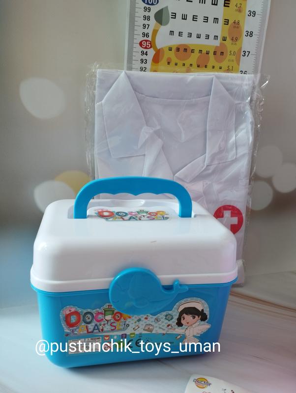 Пусть ваш ребенок попробует себя в роли врача различных специальностей: зубной, детский, врач скорой помощи, окулист... В наборе 49 элементов: халат и шапочка, бейджик, очки, чемодан, стетоскоп со звуком сердцебиения и светом, пупсик и каталка для него, капельница, баллон с кислородом, шприц, зубная щетка и зубная паста, которую можно выжать, таблица для проверки зрения и много другого. Размер: 22×16.5×15см. Смотрите другие Мои объявления, подписывайтесь, имею регулярные обновления детской, женской одежды и обуви, и игрушек. Постоянным покупателям скидка 5%. При заказе от 500 грн бесплатно доставка вкрпоште.