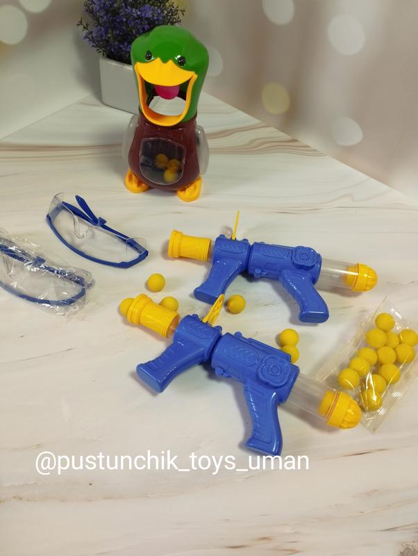 Захоплюючий набір у вигляді качки з мішенню та іграшкової зброї, який здатний відірвати дитину від комп'ютерних ігор. Легкі та м'які м'ячики зроблені з піни EVA, що робить гру абсолютно безпечною. У комплекті 24 кульки EVA. У комплекті йде пневматична рушниця- 2шт. Цей вид пістолета із крутим зовнішнім виглядом використовує повітря для стрілянини. У комплекті: качка-мішень, пістолет - 2 шт, пулі EVA - 24 шт, приціл - 2шт, окуляри захисні - 2шт. У грі потрібно нагодувати качку попадаючи кулями в рот. Цікава змагальна гра для дорослих та дітей. Габарити качки: 31x18x18 см. Габарити рушниці 41х7х19. 9см. Дальність стрілянини до 10м. Рекомендований вік 4+ роки. Дивіться інші мої оголошення, підписуйтесь, маю регулярні обнови дитячого, жіночого одягу та взуття, та іграшок. Постійним покупцям знижка 5%.