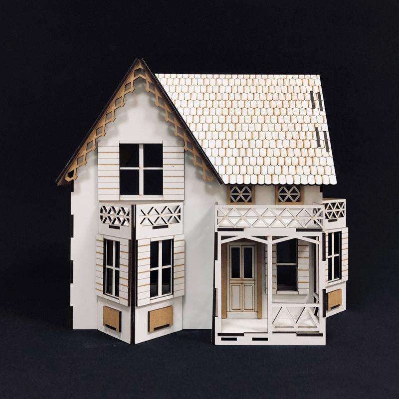 Будиночок для маленьких ляльок. (Артикул 1110 mini) Цей мініатюрний будиночок стане відмінним подарунком для маленьких принцес і їх ляльок. Будиночок збирається як конструктор. Розміри: довжина - 33 см, ширина - 21 см, висота - 30 см Висота поверху 10 див. Матеріал: МДФ 4 мм, білий. Можливі незначні зміни товщини, кольору і фактури матеріалу, з якого вирізається будиночок і меблі. Всі розміри вказані орієнтовно. Будиночок продається без меблів.