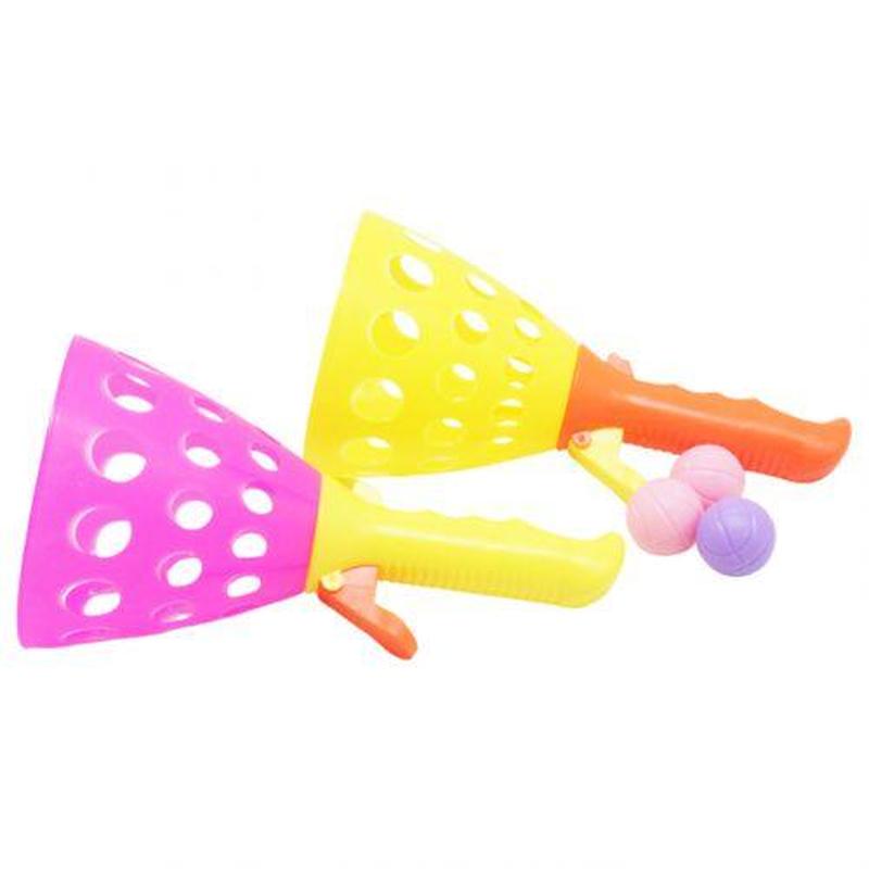 Цікава гра для дітей і дорослих. До комплекту входять 2 ракетки та 3 м'ячики. Набір виготовлений із міцного пластику. Гравці беруть у руки спеціальні ракетки й один із них стріляють м'ячиком, а другий має зловити. Усередині ракетки є спеціальний механізм, який допомагає запустити м'ячик. Для дітей від 3 років. Різні кольори в асортименті. Паковання: Сітка Колір: Різнобарв Вага в упаковці: 125 г Габарити в упаковці: 13 x 26 x 13 см Страна виробник: Китай Матеріал: Пластик Комплектація: 2 ракетки, 3 м'ячики