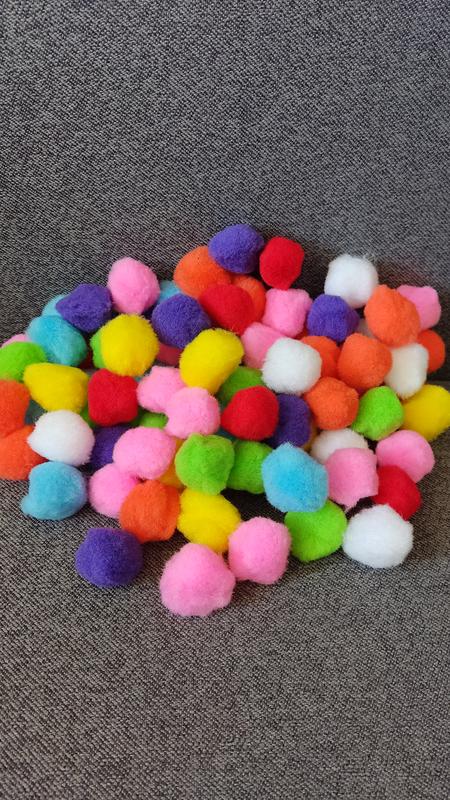 Помпони для розвиваючих занять та дитячої творчості Помпони можна використовувати для сортування, вивчення кольорів, рахунку і багато чого іншого. В набір входить 100 шт помпонів, колір мікс. Розмір 15 мм