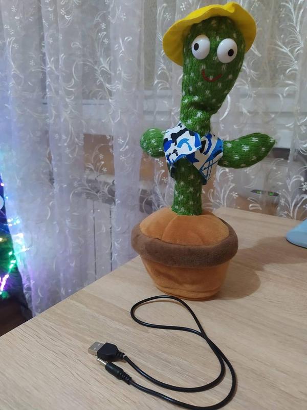 Танцующий кактус – музыкальная плюшевая говорящая игрушка / Детская мягкая игрушка повторюшка Танцующий кактус – новая музыкальная говорящая игрушка для вашего ребенка – хит Тик-Тока 2021г. Игрушка представляет из себя шевелящуюся поющую разговаривающую куклу в форме кактуса в горшке с большими глазами и улыбающимся лицом. Игрушка танцующий и поющий кактус очень весело танцует, светится и воспроизводит много мелодий. Так же она способна запоминать ваши слова и повторять их, забавно танцуя при этом. Плюшевый танцующий кактус – это лучший подарок, который надолго увлечет как детей, так и взрослых, и подарит кучу радостных эмоций. Характеристики мягкой говорящей игрушки Танцующий кактус: – Материал: плюш – Размер игрушки: 32 см. – Функционал: исполняет множество песен, светится, танцует, повторяет слова – Источник питания: 3 батарейки типа AA (в комплект не входят)