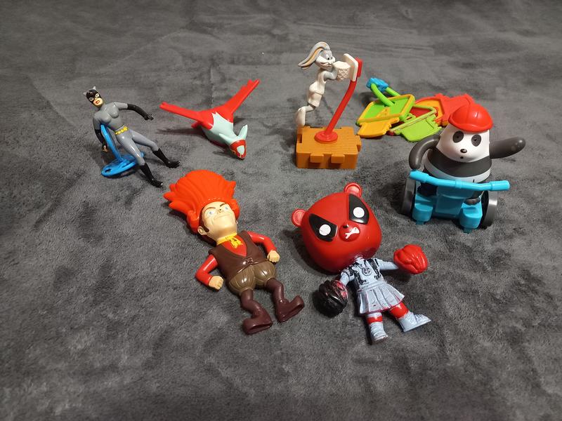 продаються поштучно по 20-30грн., або набором за 150. у персонажа за Шрека знімається волосся, панда пристібається до самокату, можливо грати окремо, кролик має колесо знизу, коли платформу везти кролик обертається, дракон з колесиками знизу.