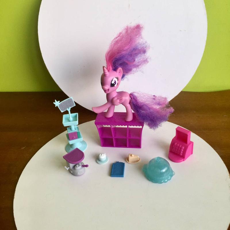 Hasbro: Ігровий набір My Little Pony "Візьми із собою Твайлайт Спаркл" Аксесуари є ті, що на фото( книжка зламана) Нюанси: потертість одного ока, заплутана грива. Ноий набір купувався більш ніж за 600 грн. Продаю багато інших ігрових наборів з поні від бренду Hasbro. Також багато різних настільних ігор, м'яких та інтерактивних іграшок, різних цікавих та розвиваючих книжок. Також багато різного одягу Некст до 10 років після моїх онук-близнят.