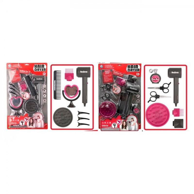 Набір перукаря дитячий YF820A-2-3 Набір перукаря дитячий YF820A-2-3 буде чудовим подарунком маленькій модниці. Всі аксесуари безпечні для дитини, вони приємно виглядають. Набір упакований у блістер. Характеристики: - Тип: набір перукаря - Тип живлення: батарейки - Матеріал: пластик - Вік: від 3 років - Кількість дизайнів: 2 - Розмір упаковки: 48,5х30х5 см - Упаковка: блістер - Колір: різні кольори Комплектація: - Фен - Гребінець - Набір перукаря