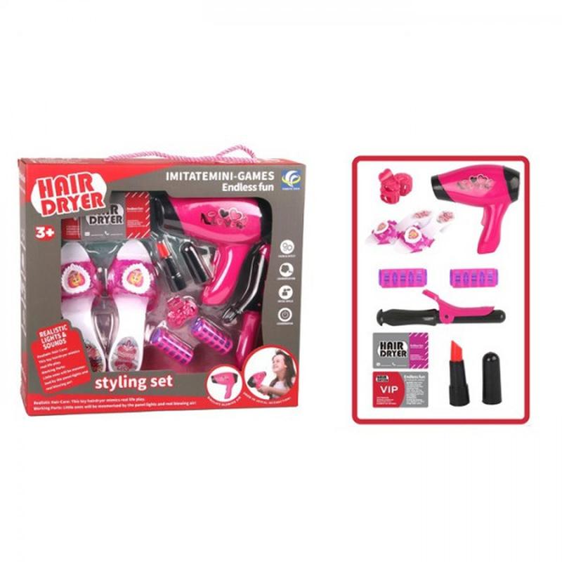 Набір перукаря дитячий YF820C-1 Набір перукаря дитячий YF820C-1 буде чудовим подарунком маленькій модниці. Всі аксесуари безпечні для дитини, вони приємно виглядають. Набір упакований у коробку. Характеристики: - Тип: набір перукаря - Тип живлення: батарейки - Матеріал: пластик - Вік: від 3 років - Кількість дизайнів: 1 - Розмір упаковки: 33,5х30х7 см - Упаковка: коробка - Колір: різні кольори Комплектація: - Фен - Гребінець - Туфлі