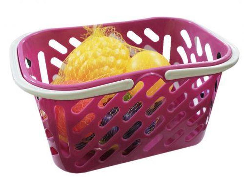 Кошик із фруктами. 8 фруктів у наборі: лимон, ананас, апельсин, виноград, манго, полуниця, яблуко, груша. Бренд: Kinderway Паковання: Сітка Колір: Рожевий Вага в упаковці: 335 г Габарити в пакованні: 31 x 21 x 14 см Габарити без паковання: 31 x 21 x 14 см Страна виробник: Україна Матеріал: Пластик Комплектація: Кошик, фрукти (8 штук)