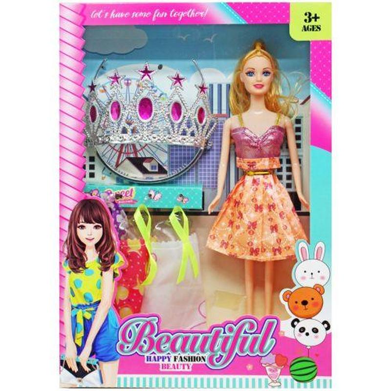 Ігровий набір, до якого входить лялечка в гарному вбранні, 3 змінні плаття для неї та блискуча корона для дитини. Діаметр обруча — 11 см. У лялечки рухомі руки, ноги та голова. Висота — 26 см. Набір буде прекрасним подарунком і принесе море позитивних емоцій дитині. Різні види в асортименті. Бренд: MIC Паковання: Коробка Колір: Різнобарв Вага в упаковці: 150 г Габарити в упаковці: 5 x 23 x 33 см Габарити без паковання: 4 x 26 x 6 см Страна виробник: Китай Матеріал: Комбінований Комплектація: Лялька, 3 плаття, корона