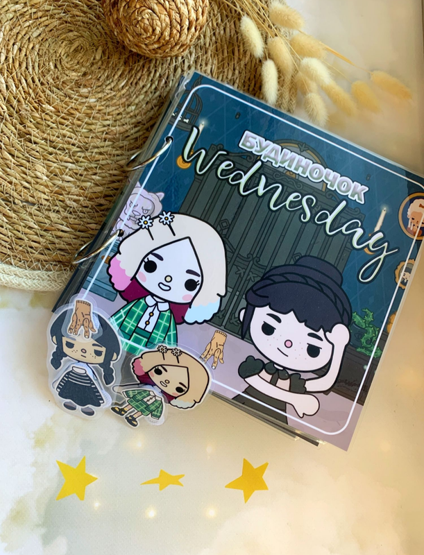 Тока бока Венздей Захоплююча гра форматом 21*21 ( скріплення пружиною) 8 ігрових сторінок більше 130 деталей 2 персонажі