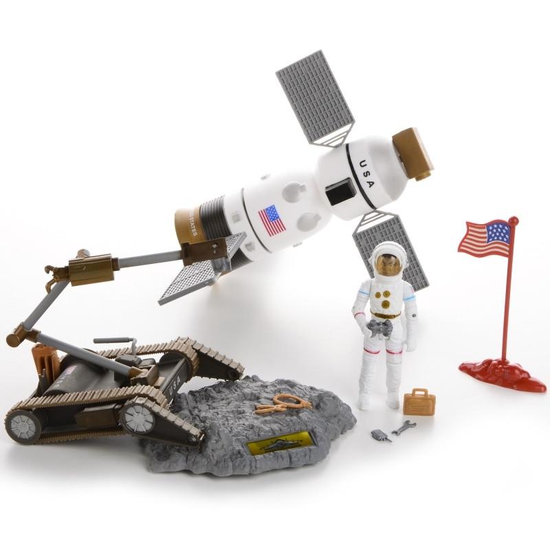 Хлопчаки мріють з самого дитинства стати космонавтами. За допомогою цього ігрового набору дитина наблизиться на крок до своєї мрії. Повний комплект космічної атрибутики: супутник, космічний всюдихід, астероїд, астронавт і прапор з-підставкою для нього. З таким набором пора вирушати в подорож на незвідану планету і відкривати там нове життя. Також можна населити планету жителями (інші іграшки) і розігрувати різні життєві ситуації, наприклад, розвиток основних сфер потрібних для повноцінного життя. А можна і позначити межі держави і захищати їх. Фантастика – це найулюбленіший жанр сучасних дітей. Фігурки мають досить компактний розмір, що дозволяє брати їх з собою куди завгодно. Весь ігровий набір виготовлений з якісного пластику і гуми, безпечних матеріалів для здоров'я дітвори. Під час гри у малечі розвивається дрібна моторика рук, уява, уважність. Рекомендується для гри дітям від 3 років. Комплектація: космонавт – 1 шт; скафандр – 1 шт; всюдихід – 1 шт; пілотований космічний корабель – 1 шт; великі крила для коробля – 2 шт; маленькі крила для коробля – 2 шт; прапор США – 1 шт; підставка під прапор – 1 шт; астероїд – 1 шт; аксесуари – 6 шт.