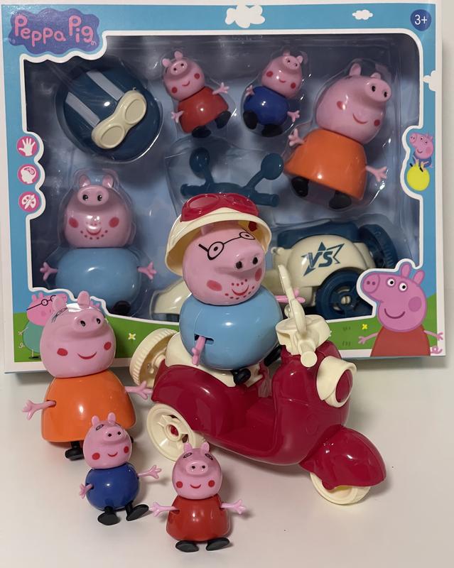 Ігровий набір героїв свинка пеппа, 4 фігурки, мотоцикл, з аксесуарами