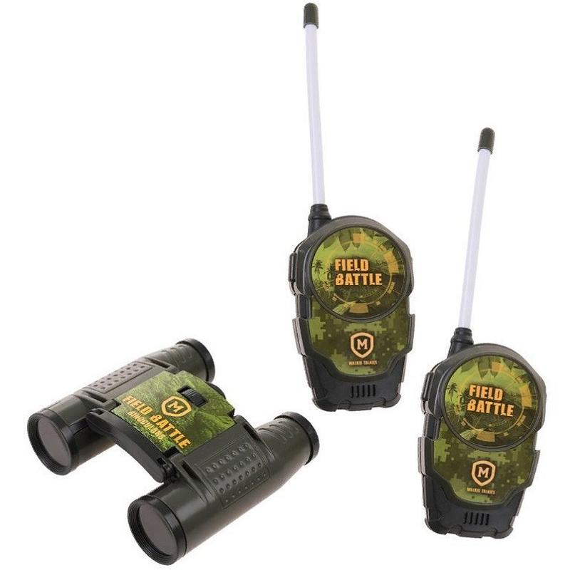 Ігровий набір містить 2 рації й бінокль. Набір чудово підходить для дитячих ігор у військових або секретних агентів. Для роботи рації потрібно додатково придбати 1 батарейку «Крона» 9V в кожну рацію. Розмір однієї рації 7.5*4*25 см. Розмір бінокля 11 * 5 * 7 см. Розмір коробки 21 х 5 х 26 см.
