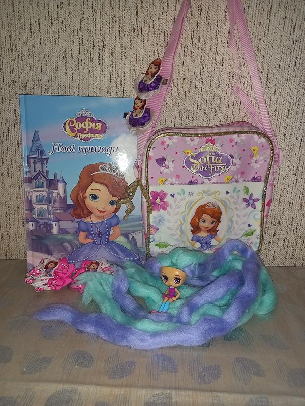 Продам набор для любителей Принцессы Софии Сумочка стан идеальна 1шт. Книга 1шт. резинка 2шт. заколки 2 шт. кукла лолл длинные волосы (для причесок) Отправлю удобной для Вас по почте