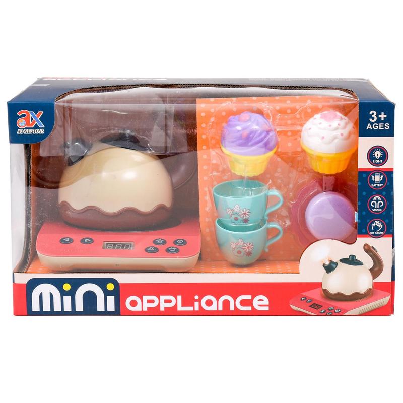 Іграшковий набір "Чайний сервіз". Комплектація - плита, чайник, чайний набір та кекси. Світлові та звукові ефекти. Живлення - батарейки. Матеріал - пластик. Паковання — коробка. Розмір - 33х19х19 см.