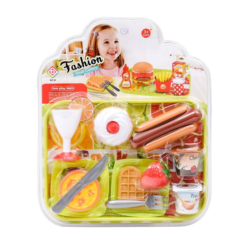 Іграшковий набір "Фастфуд". Комплектація - піднос, хот-дог та інші продукти. Матеріал - плпстик. Паковання — слюда. Розмір - 29 х 34 см.