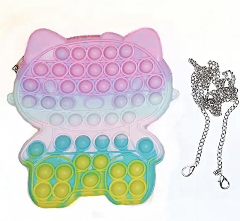 Дитяча сумка Поп Іт Hello Kitty - унікальний аксесуар, приємний на дотик, має гарний дизайн. Вона легко чиститься і в ній можна переносити різні дрібні речі. Зручна у носінні. Натискання на бульбашки на сумці сприяє тактильній стимуляції. Отже, сумка на ремені з бульбашками POP IT розвиває логічне мислення та тренує тактильні відчуття, розважаючи, що дуже підходить для дітей. Гра з бульбашками, що грають, дуже захоплююча і допоможе зняти стрес. Ця нова сумка через плече зроблена з якісного силікону і не завдасть шкоди дітям і домашнім тваринам. Чи не тріскається і не ламається, її легко чистити. Діти весело провести час, граючи з цією сумкою.