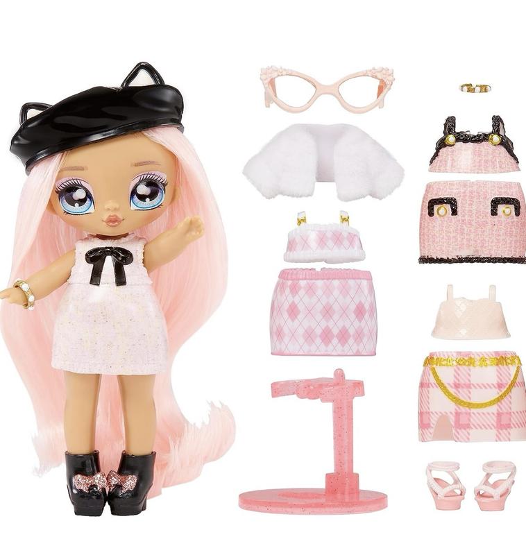 Ваш любимый опыт распаковки воздушных шаров из конфетти только что увеличился с 1 до 10 из совершенно новой Na! Нет! Нет! Минисюрприз! Острые ощущения и волнения, когда вы чешете воздушный шар из конфетти не один, а 10 раз, чтобы раскрыть модный министиль вашей куклы. Вы не узнаете, какой модный аксессуар вам попал, пока не распакуете его! У 4-дюймовой куклы Китти Кетвуд красивые детали лица, волосы с прошитыми корнями и очаровательная одежда в стиле животных, которую можно комбинировать и сочетать, создавая более 150 способов создания стилей. В комплект входит 1 кукла, 4 наряда, 1 шляпа, 1 куртка, 2 пары обуви, 1 пара очков, 1 браслет, 1 подставка для куклы и 6 соломинок.